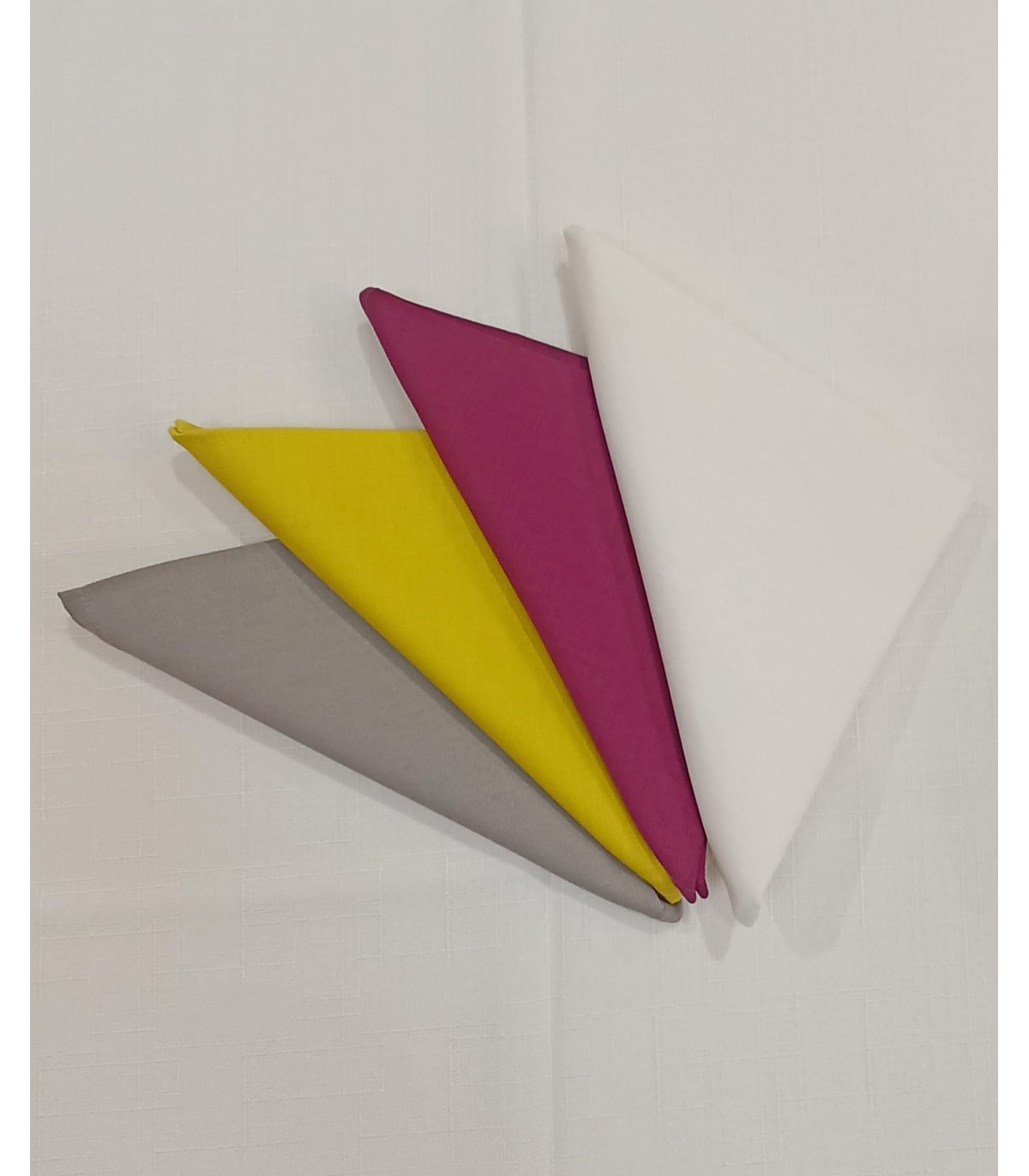 Tovaglioli sfusi in vari colori, in puro cotone idrorepellente. Il tovagliolo non è più un elemento indispensabile quotidianamente, ma rimane immancabile, sulle nostre tavole, quando si invitano degli ospiti e si vuole creare una "mise en place" che lasci il segno.