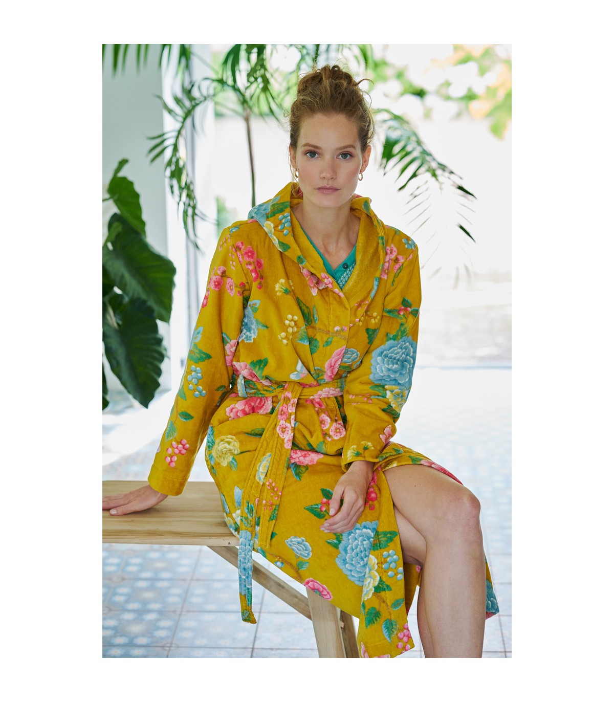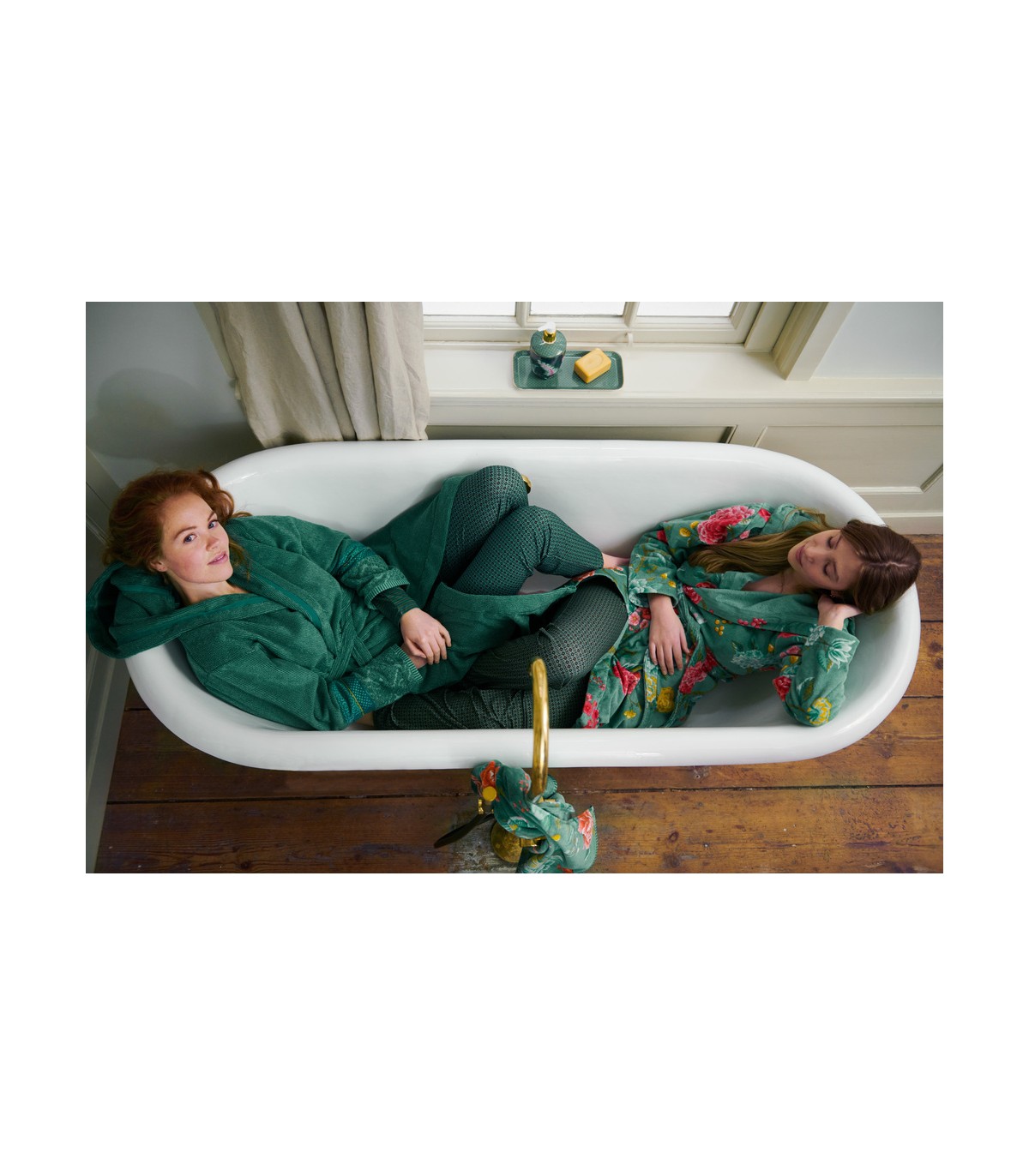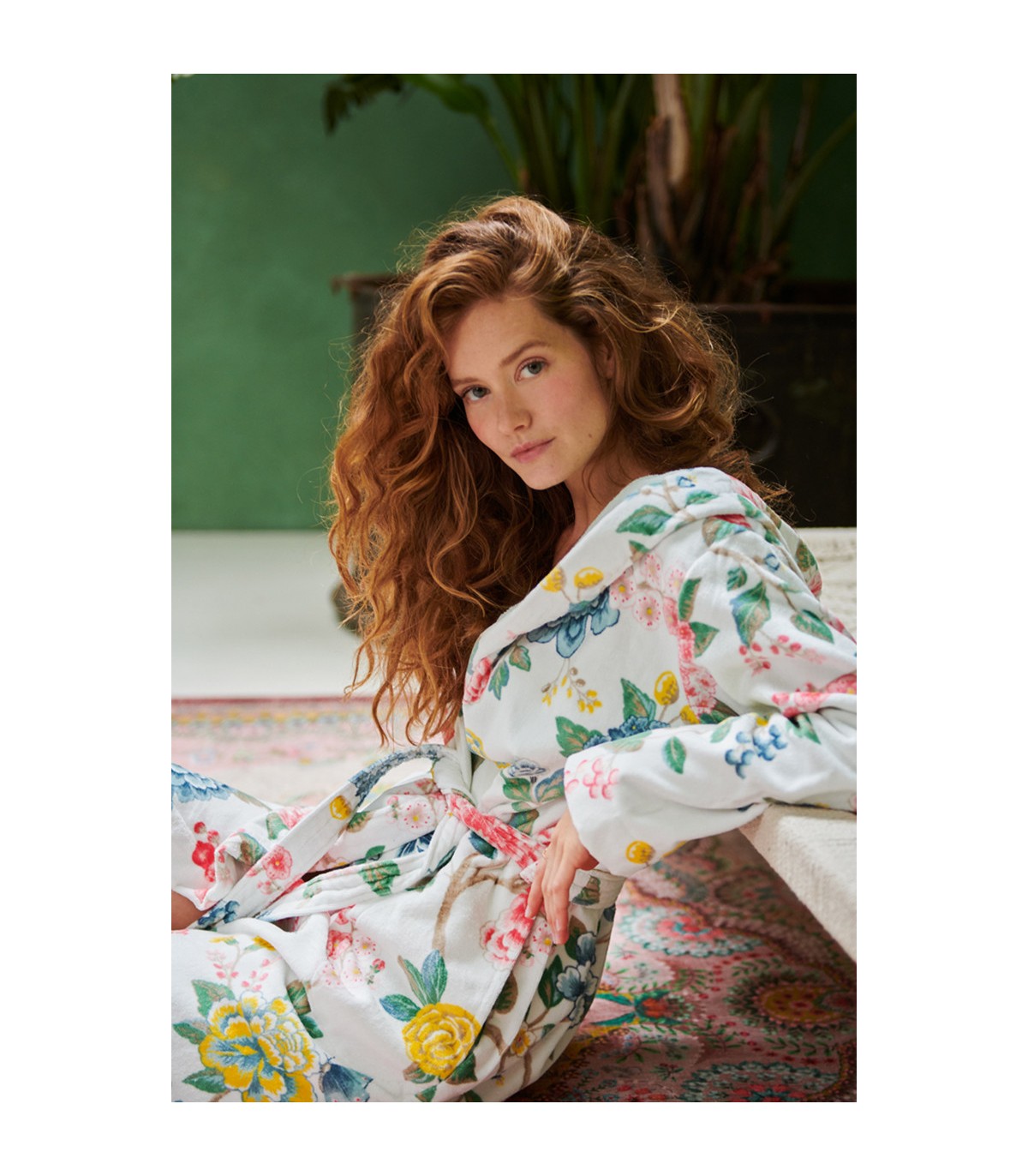 Morbido accappatoio con tasche laterali, cappuccio e cintura da annodare.