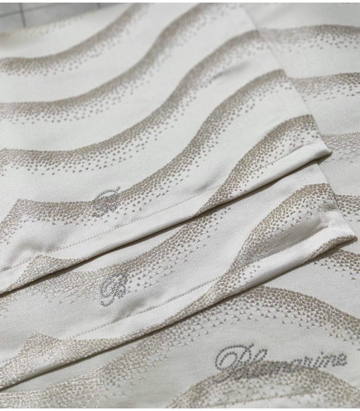 Tris di centrini in tessuto jacquard con logo Blumarine in cristalli. Il tris è formato da due centrini misura 40x30 cm. e un centrino 80x40 cm. Made in Italy