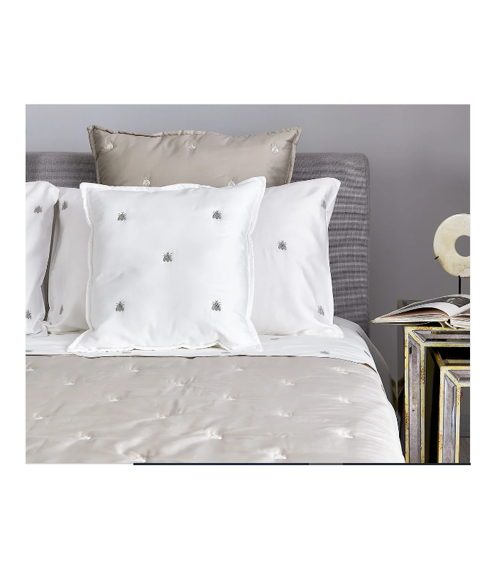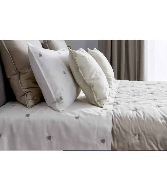 La collezione Api si rinnova nei colori e nei modelli. Le intramontabili Api di Mastro Raphael sono ora ricamate con speciali filati metallici su satin di cotone. La gamma di colori è stata rinnovata con contemporanee tonalità neutre ed una vivace selezione di colori molto brillanti. La nostra scelta è stata il color avorio adatto per qualunque ambiente e arredo. Made in Italy