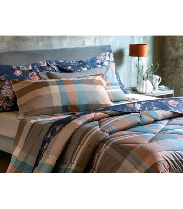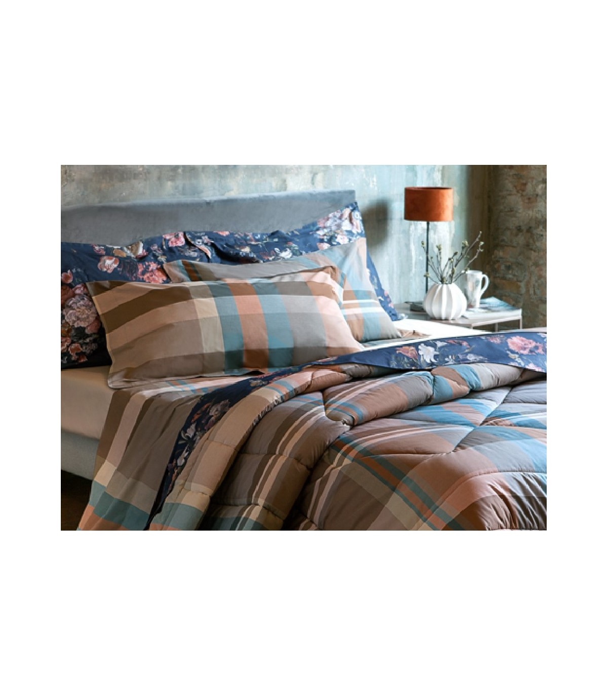 Completo copripiumino matrimoniale in puro percalle di cotone pettinato. Il tessuto è stampato in digitale con colori reattivi che rendono la stampa più vivida e resistente nel tempo, con i lavaggi.