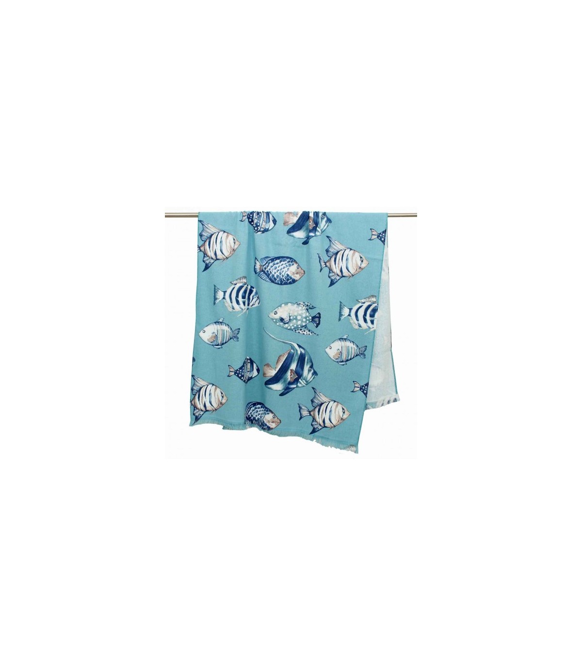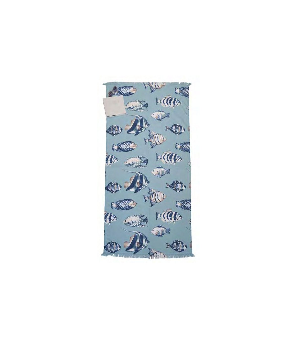 Telo mare rifinito con piccole frange, realizzato in puro cotone 100% e lavabile in lavatrice fino a 40°C.