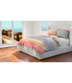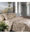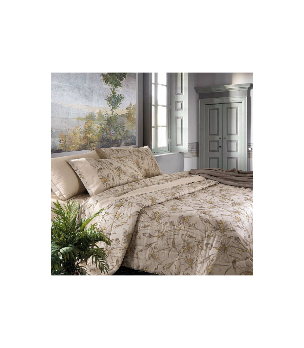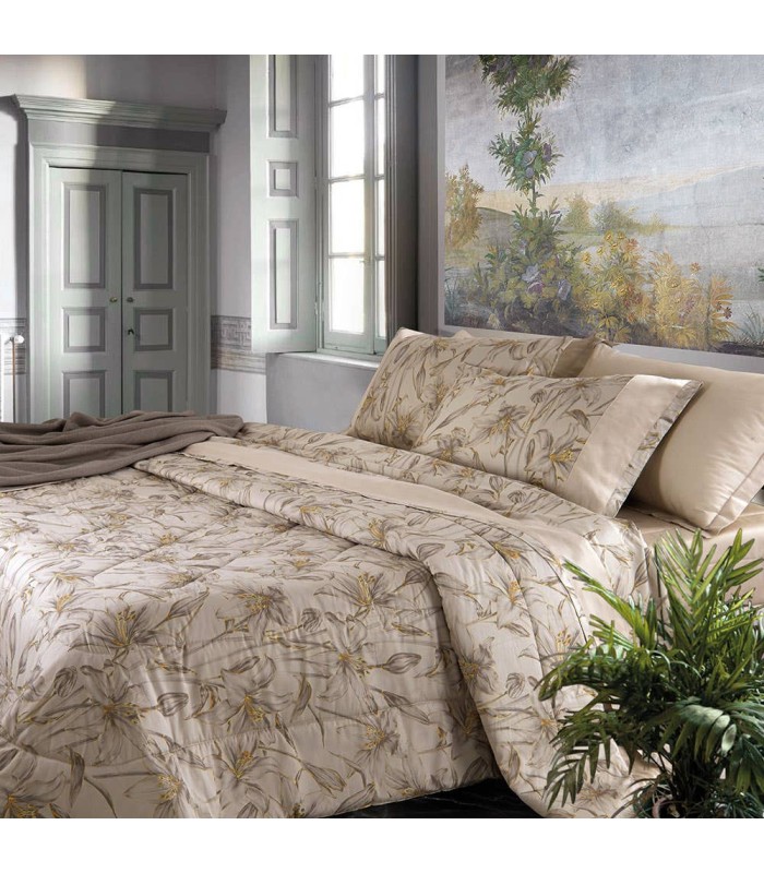 Copriletto matrimoniale in puro raso di cotone, 120 fili/cmq. Tinto e stampato su raso mercerizzato, double-face sopra stampato sotto tinta unita.