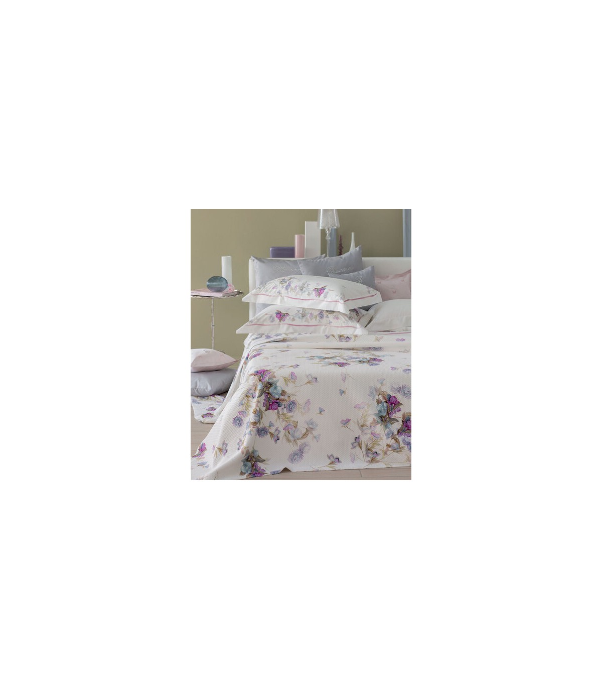 Copriletto matrimoniale liscio, non trapuntato in piquet di cotone stampato all-over, in puro cotone.