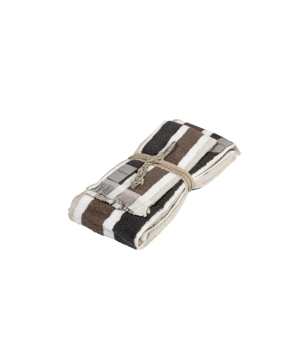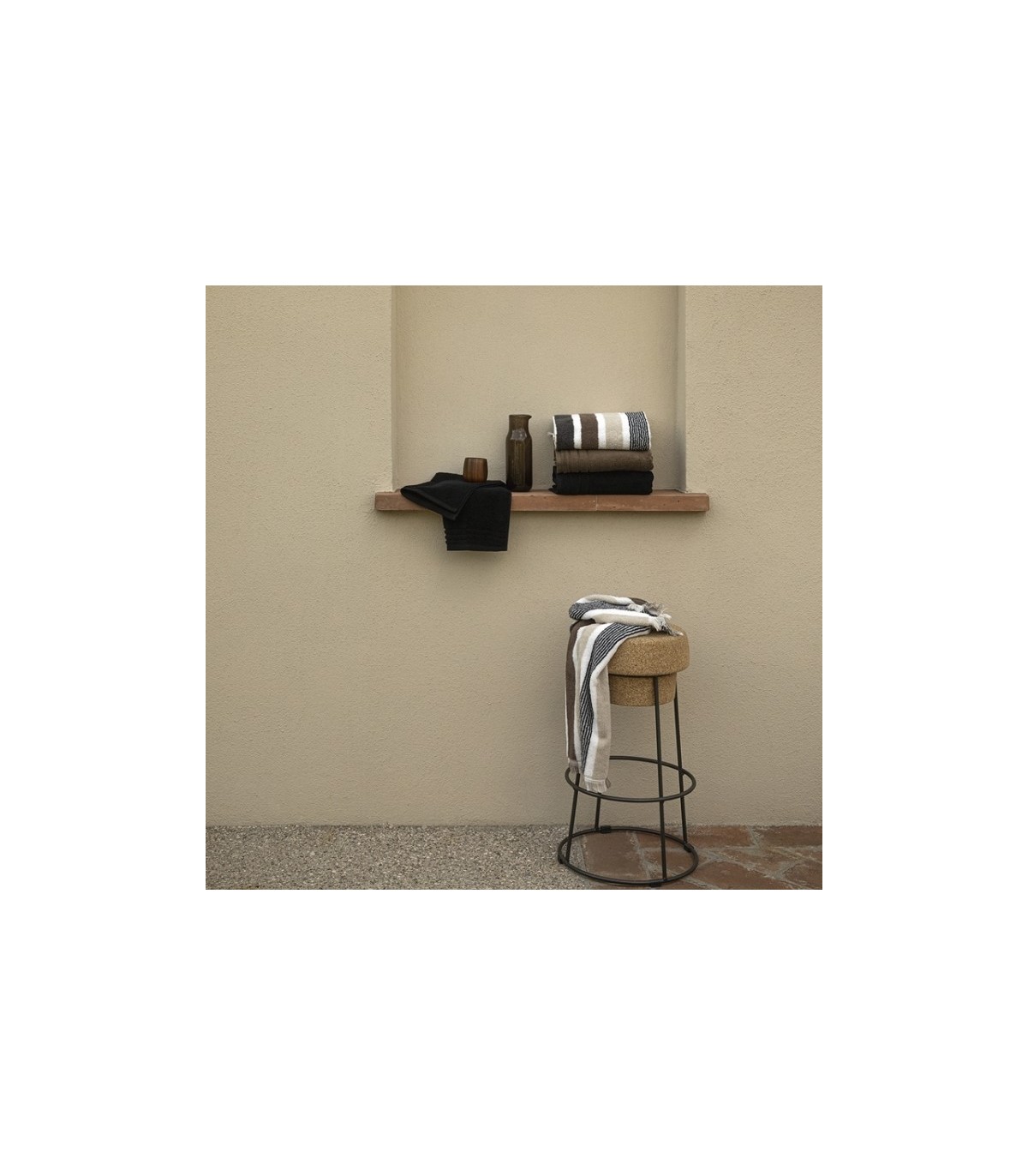 Set asciugamani viso ed ospite realizzata in cotone tinto in filo. La spugna ha un motivo a righe. Made in italy