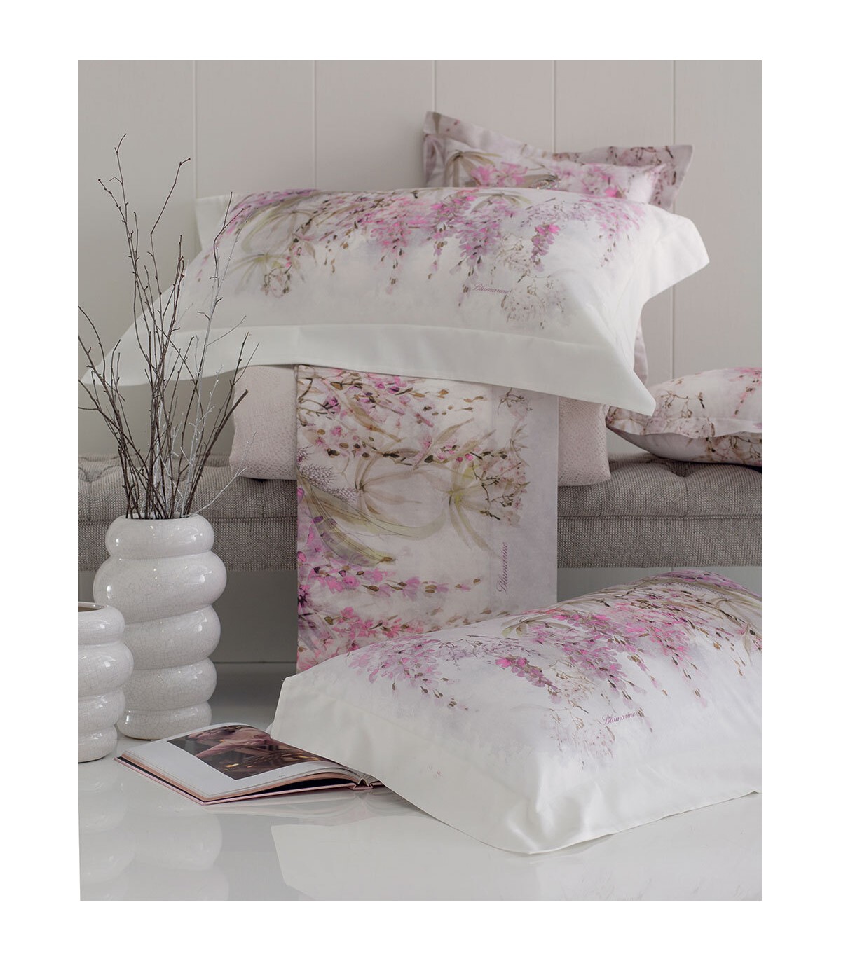 Completo lenzuola matrimoniale con stampa piazzata su raso di cotone, lenzuolo sotto in raso di cotone tinta unita. Made in italy