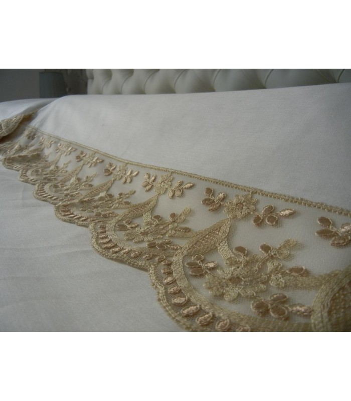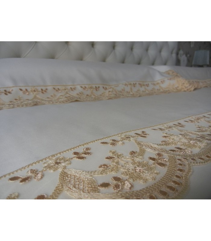 Romantico e ricercato lenzuolo matrimoniale per vestire il vostro letto con un tocco di classe.