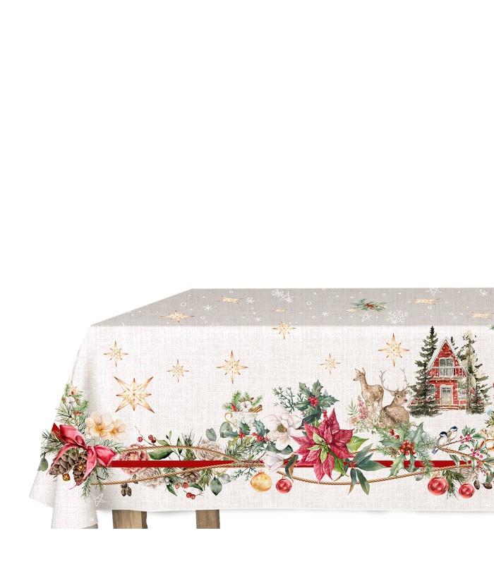 Tovaglia Natalizia e centrotavola in tessuto antimacchia, disponibile in diverse misure