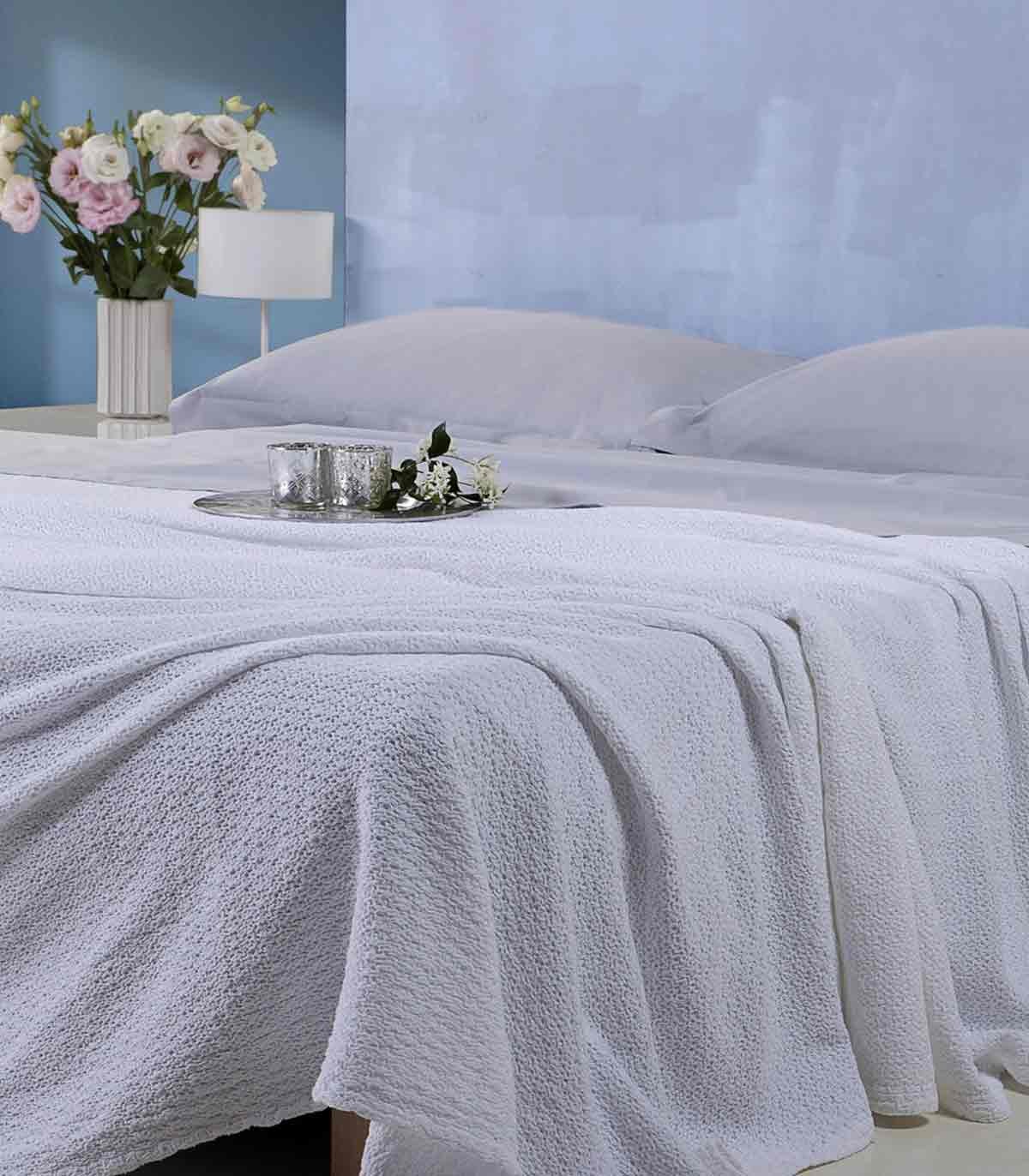 Per i periodi estivi più caldi vestire il letto diventa una questione di ordine e bellezza. Con il copriletto leggero, in tinta unita, di Mirabello&Carrara potrete mantenere intatte queste due caratteristiche rendendo sempre piacevole la vostra camera da letto.