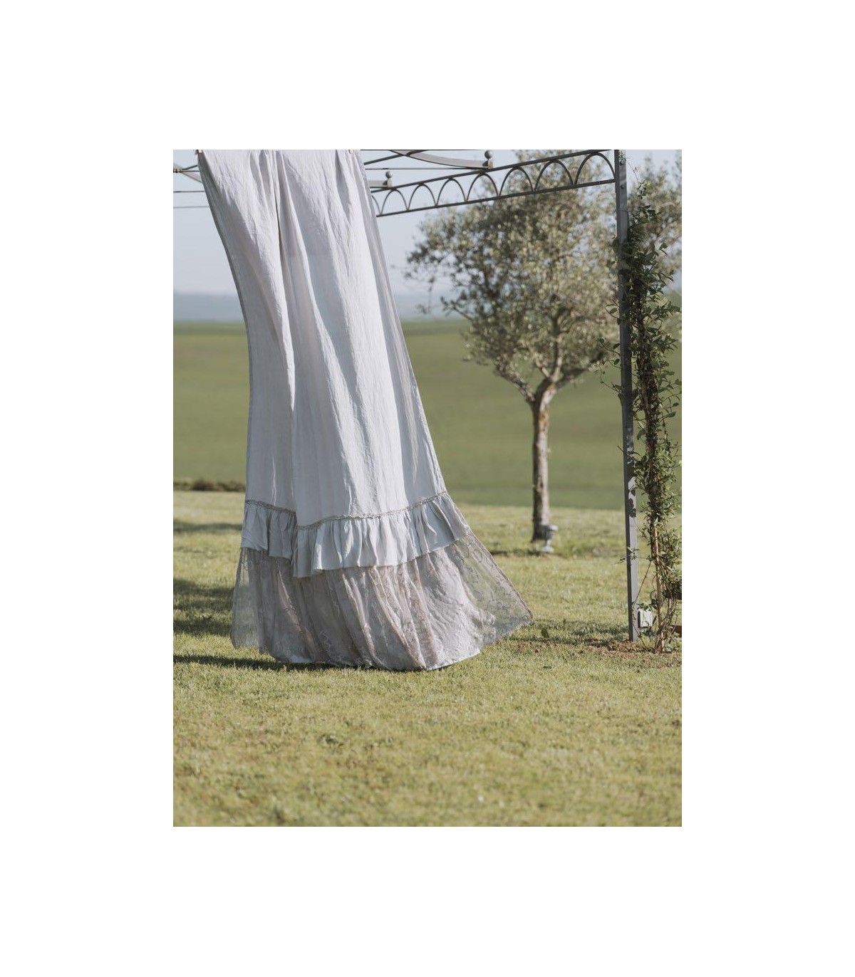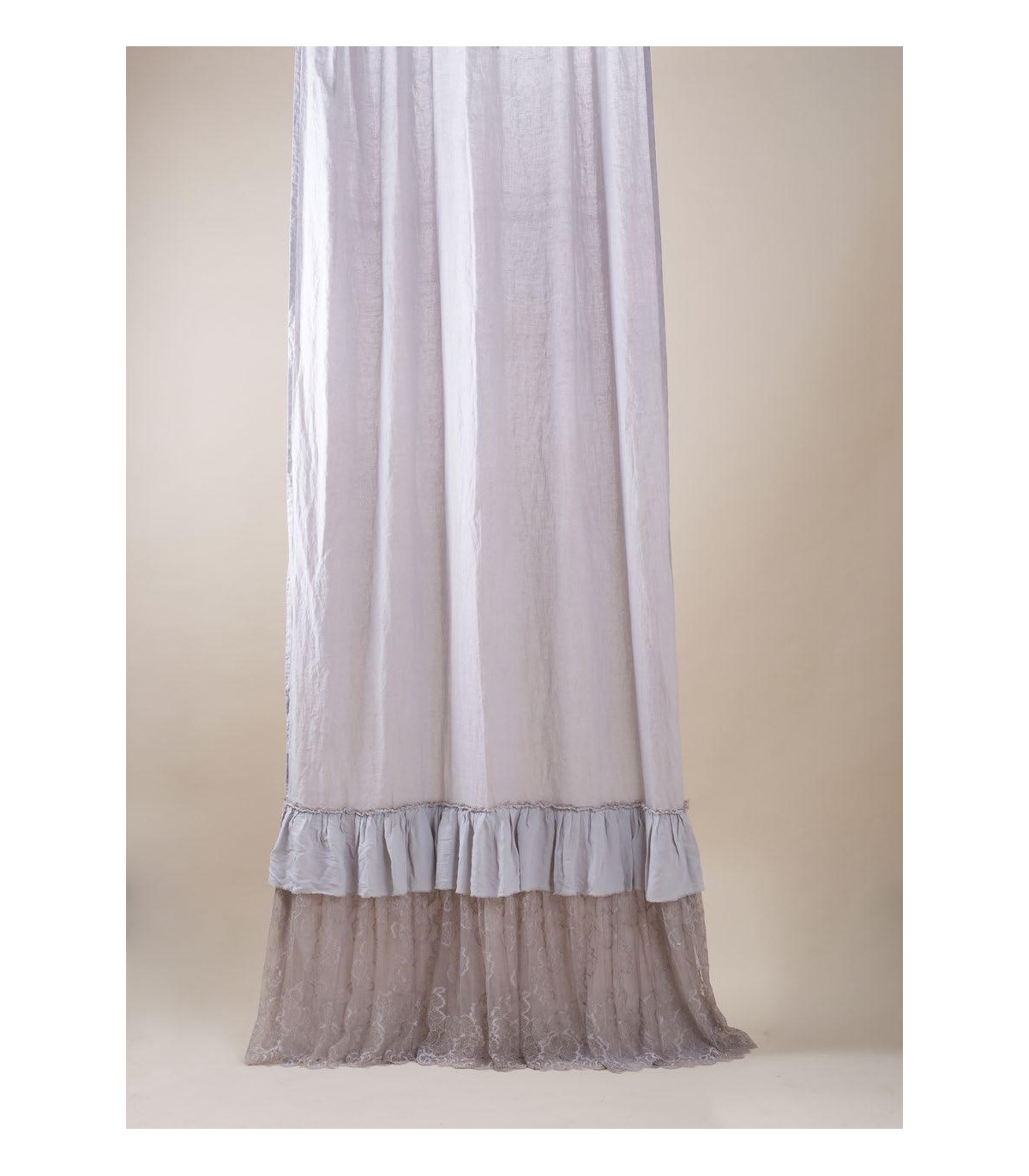 Pannello tenda pronto in puro lino, con balze, misura 140x300 cm.