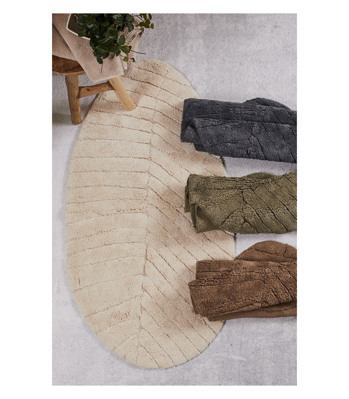 Tappeto bagno a forma di foglia.