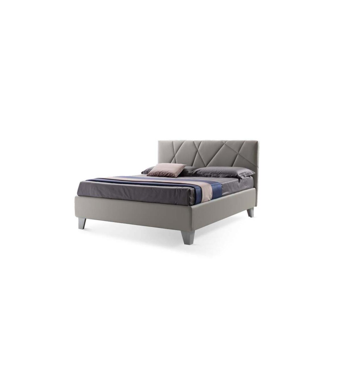 Letto matrimoniale contenitore con trapuntatura geometrica.